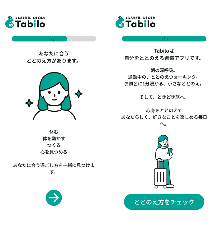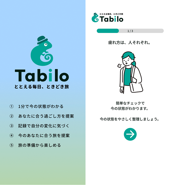 Tabiloはそんな「小さな疲れ」をととのえるためのアプリです。